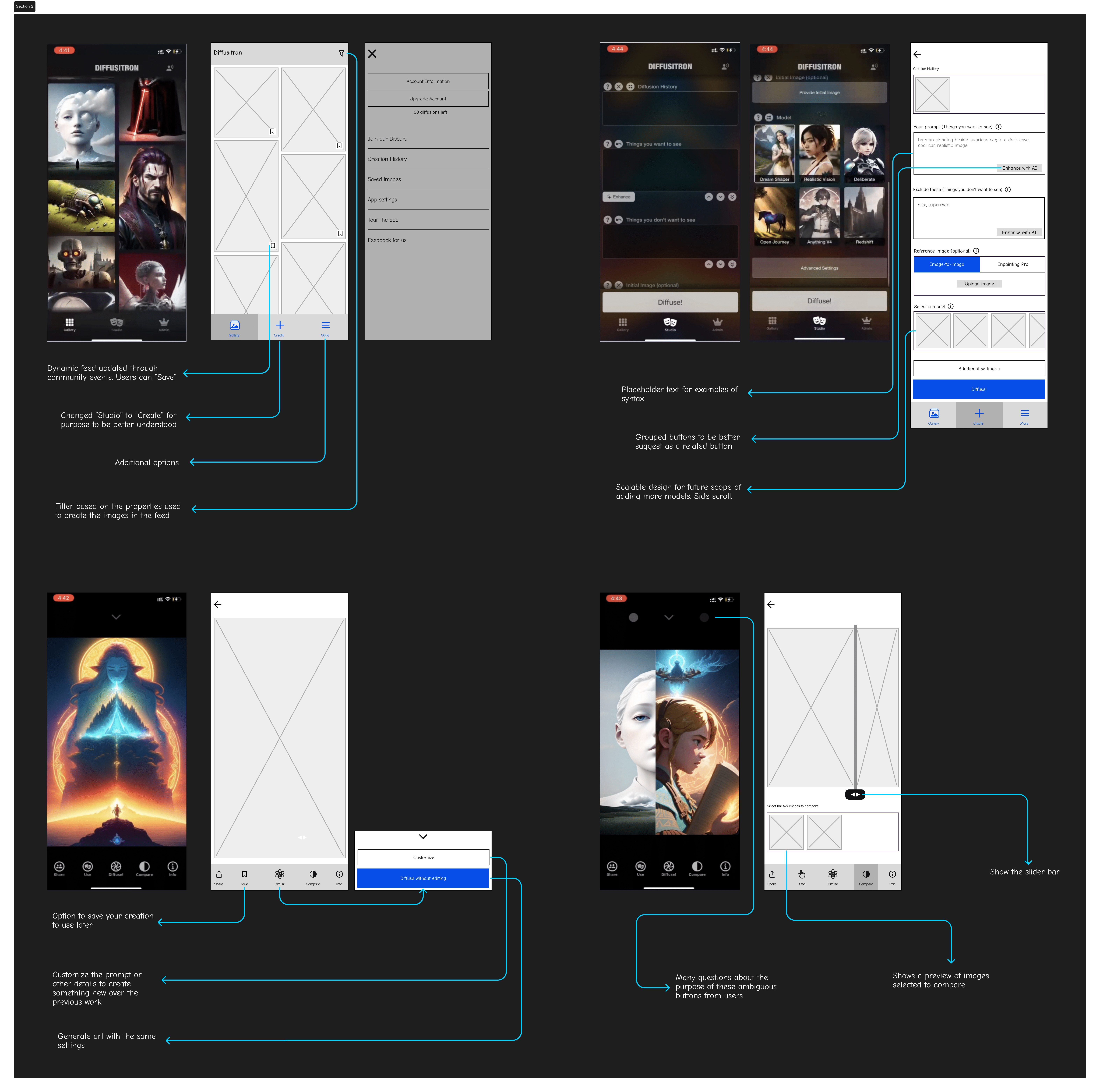 Since most of the major problems revolved around the UX of the app and not the UI, this fidelity was perfect to both quickly iterate over design ideas and to discuss/present them to the developers and stakeholders.