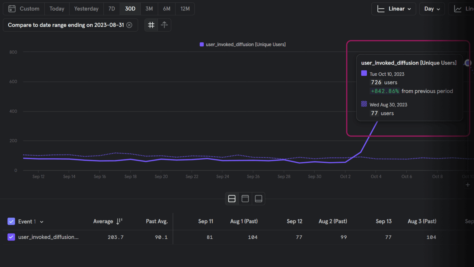 Up from about 80 users per day to about 700 users per day within 2 months