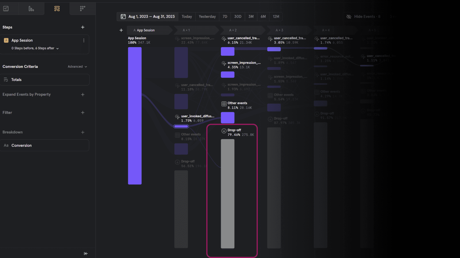 Despite the high volume of daily active users, very little percentage of users created an image before drop-off.